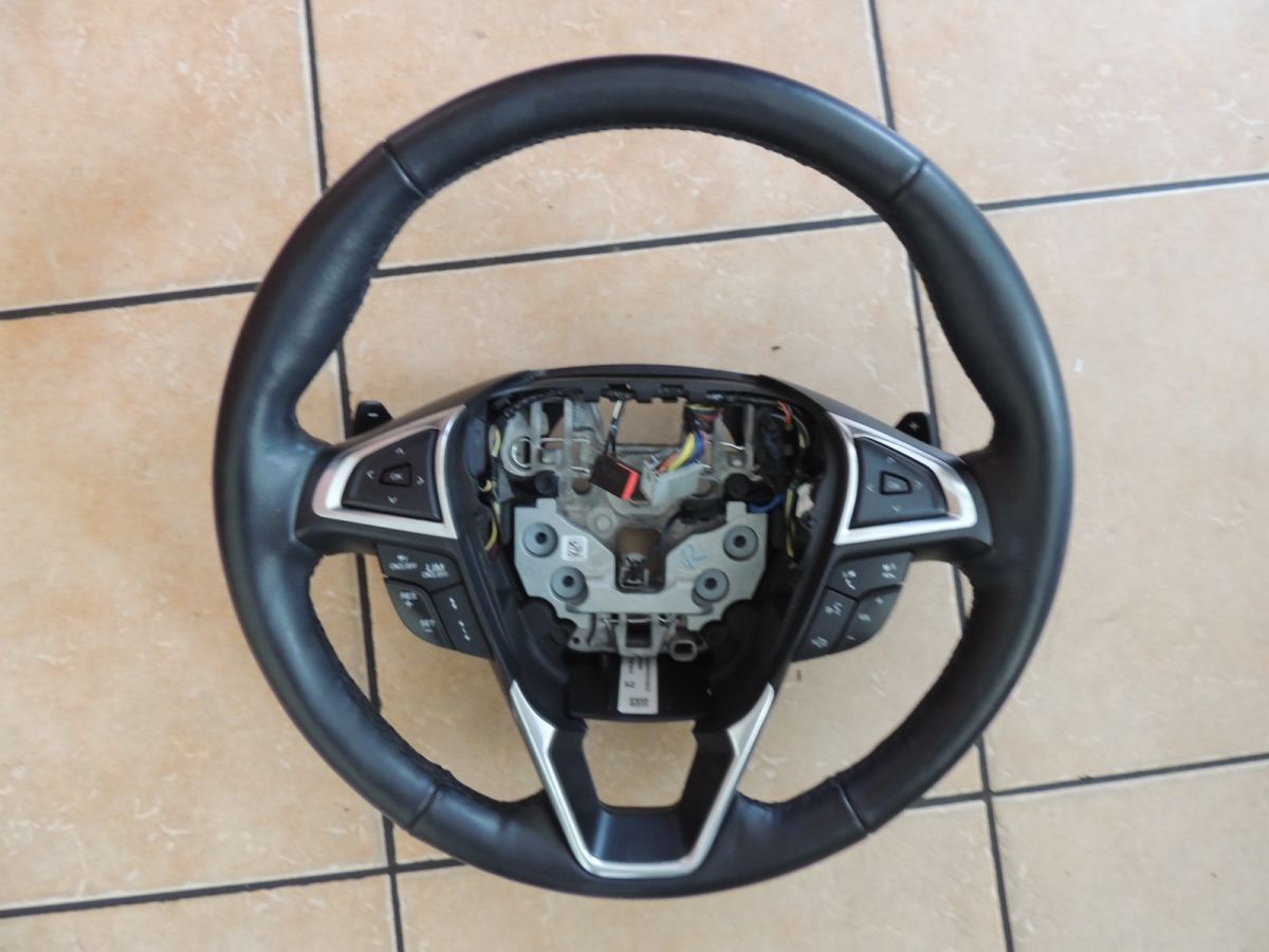 Kierownica skórzana z łopatkami, multimedialna pochodzi z Forda EDGE 2 z 2016r. Silnik 2.0 TDCI 154 kW T9CE 4Y. Model produkowany w latach 2014 do 2018. Kod lakieru G1.